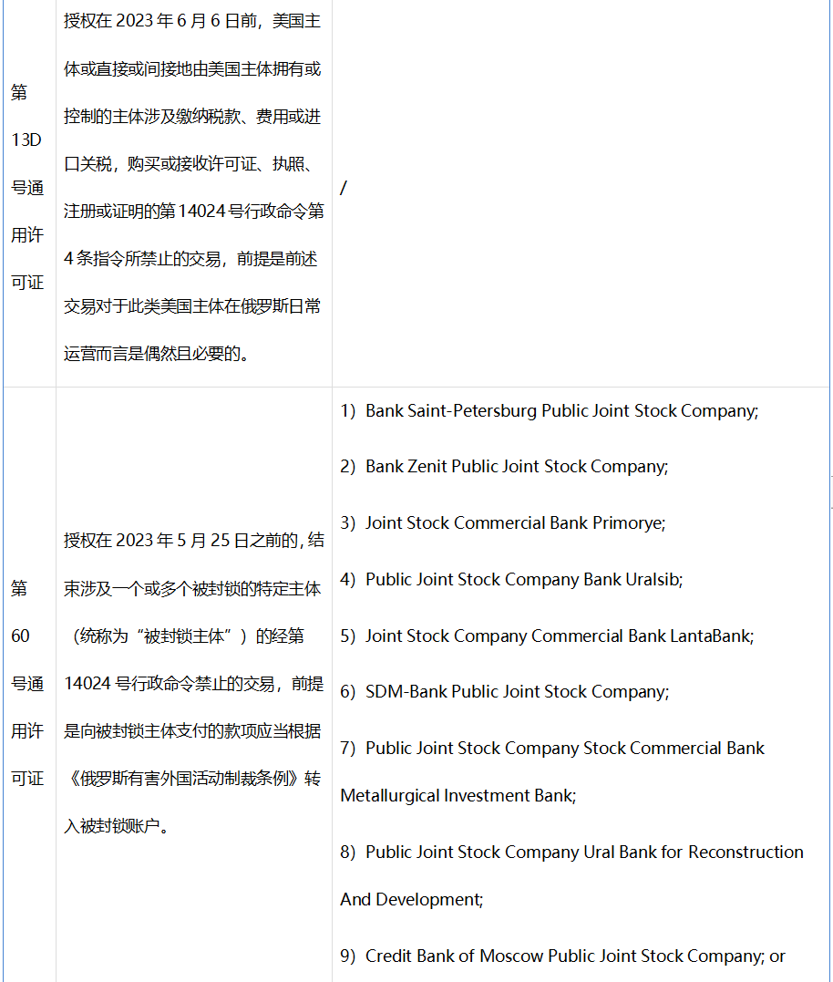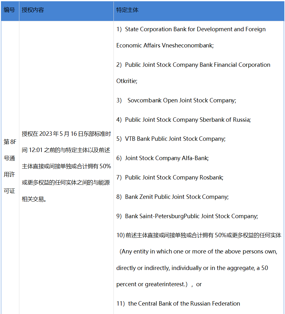 (2)OFAC签发第8F号、第13D号、第60号、第61号通用许可证