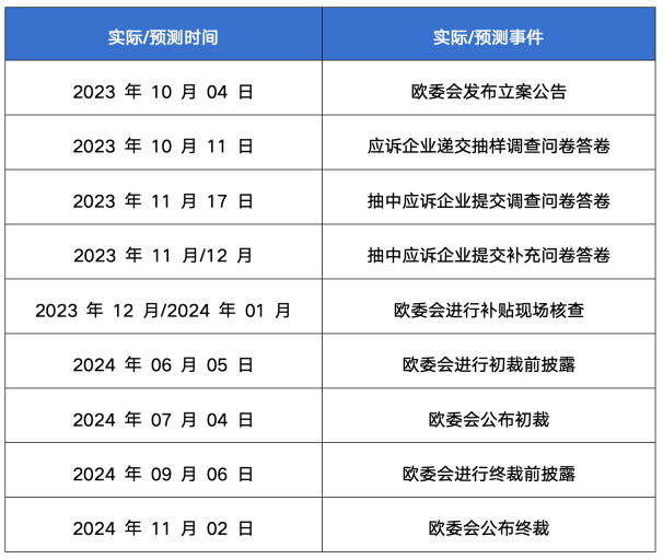 根据欧盟当前有效的《反补贴基本条例》(Anti-subsidy basic Regulation,Regulation (EU) 2016/1037)及欧盟1997年以来的反补贴实践,欧盟委员会(以下简称“欧委会”)本次BEVs反补贴调查,将按照以下程序和预测时间线展开: