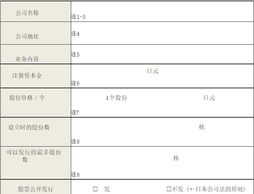注1:必须先决定公司的种类。比如是株式会社还是合同会社。