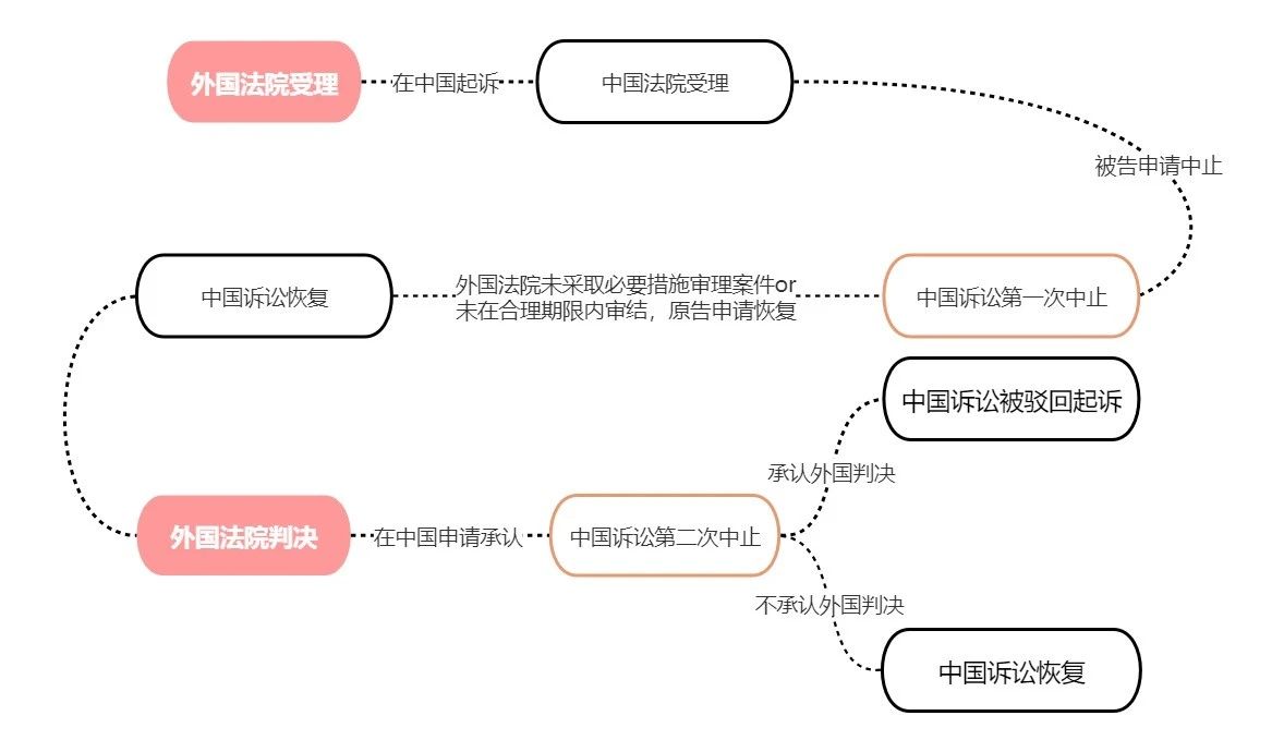 (3)中止诉讼是否必要。值得注意的是,因条文规定法院“可以”裁定中止诉讼,当事人申请中止后,中国法院对于是否中止仍享有裁量权。因此,我们认为中国法院还可能结合当事人关于中止诉讼是否会造成的无法弥补的损害、在中国进行保全(财产、行为、证据)的紧迫性等意见作出综合判断。