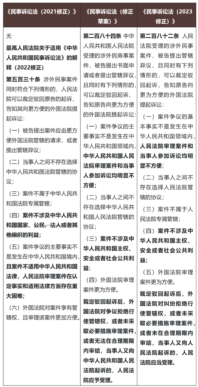 本次修法表面上增加了不方便管辖规则,但实际是将司法解释中不方便管辖的成熟规定上升为法律,并对适用条件进行完善,不属于新增制度。对比前后文本变化可以发现少量改动如下: