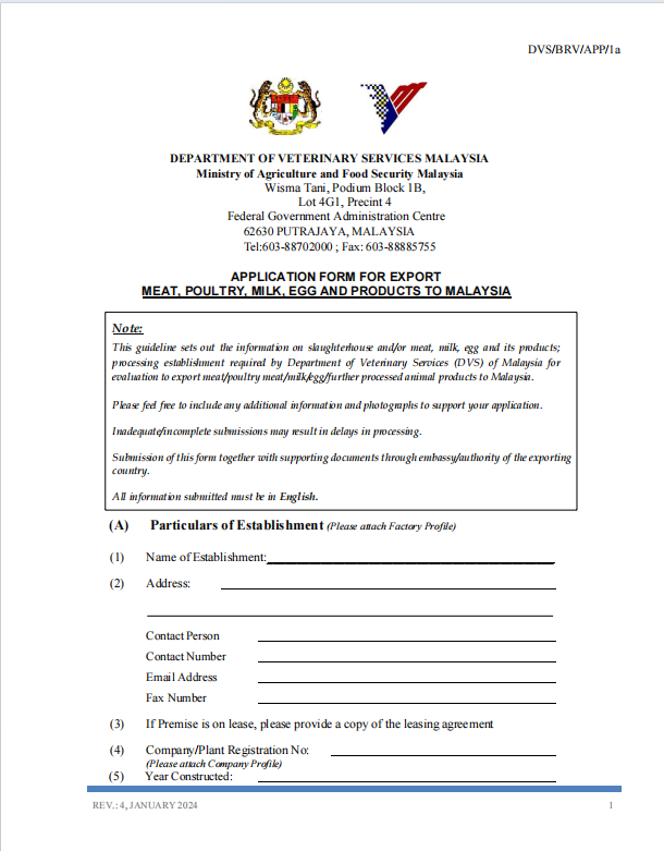 出口马来西亚生产企业需通过海关总署对外推荐注册,申请表和申请指南可在马来西亚兽医局(DVS)官网获取。