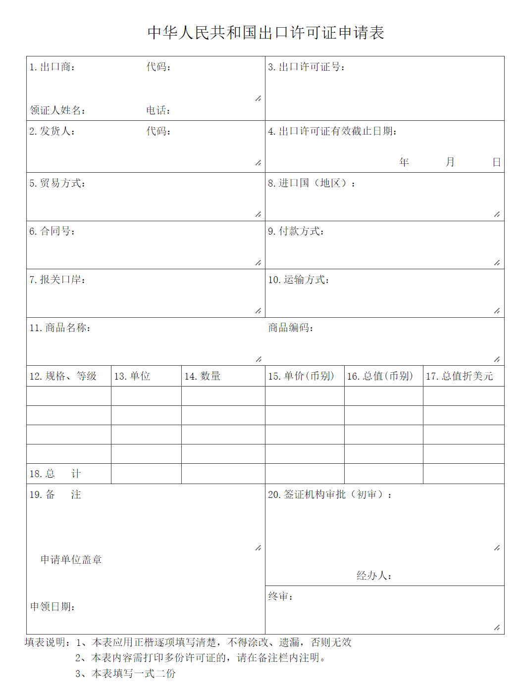 1.出口许可证申请表: