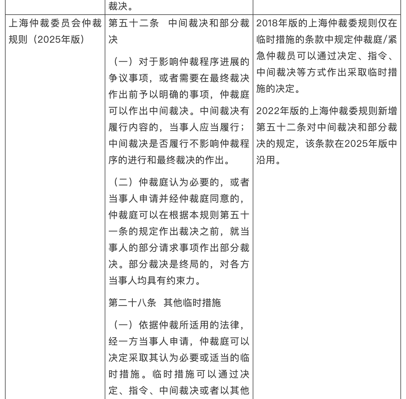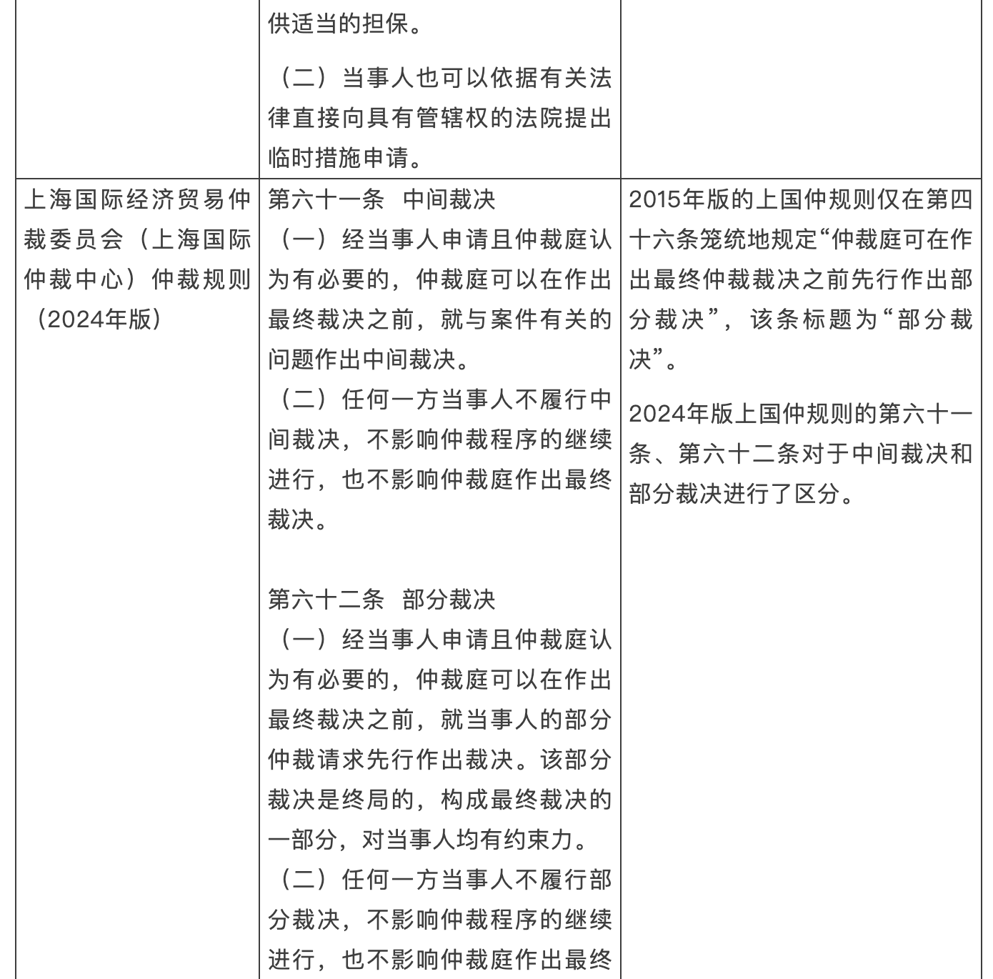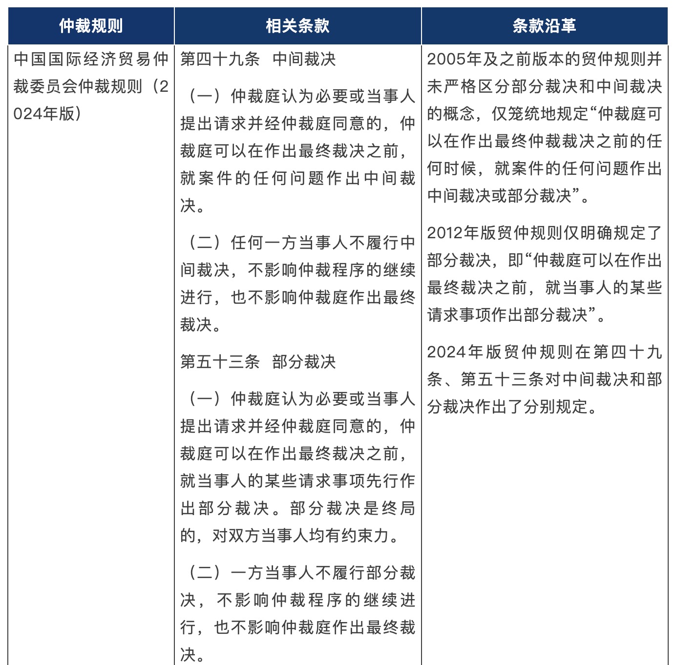目前尽管立法层面对于部分裁决、中间裁决等概念仍尚未作出严格区分,但随着国内商事仲裁实践的发展,特别是各仲裁机构仲裁规则的不断完善,我国的仲裁实践及理论对于部分裁决和中间裁决的认识已渐趋统一。
