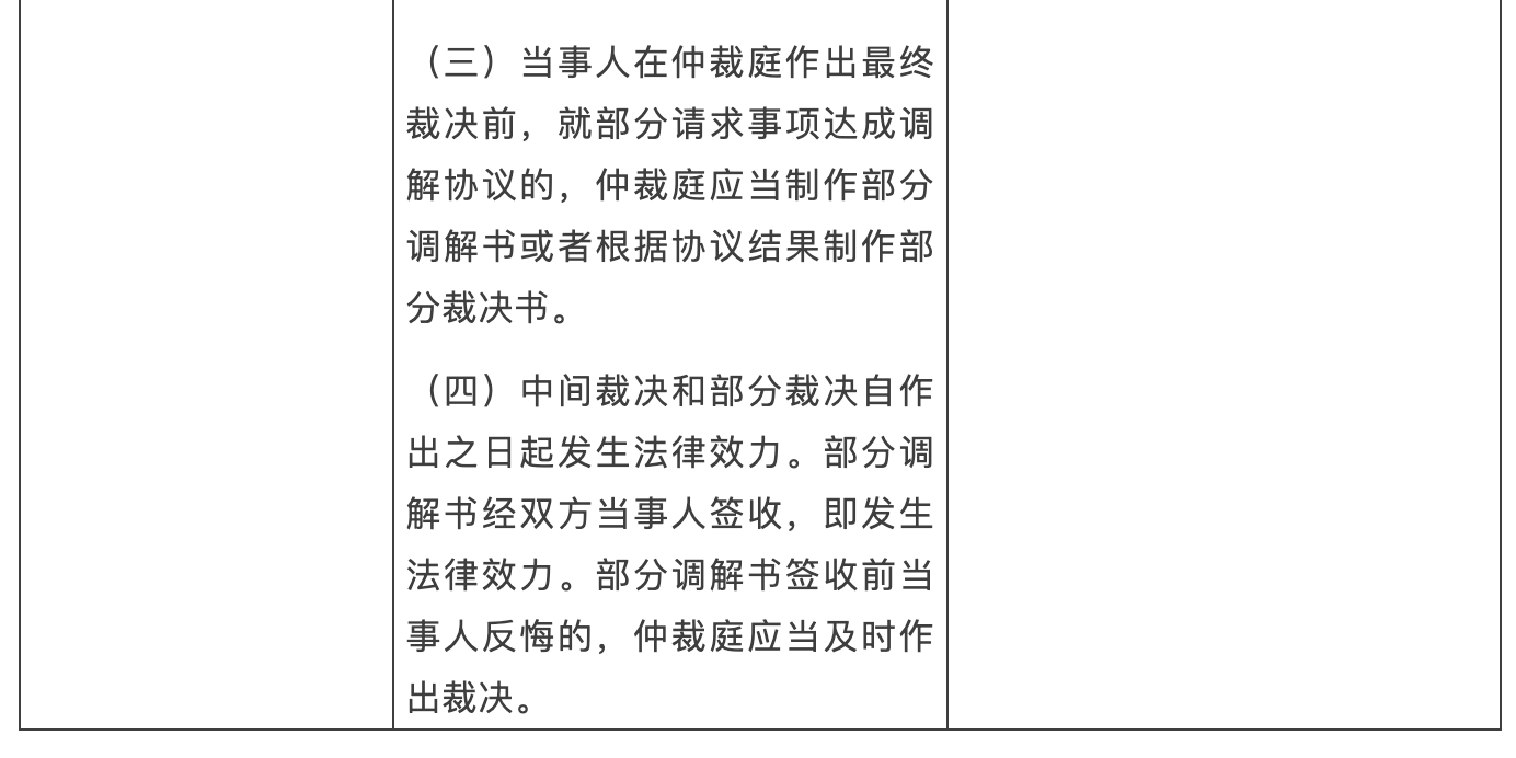 然而,全国人大常委会审议并于2024年11月8日公布的《中华人民共和国仲裁法(修订草案)》并未包含征求意见稿的上述修改,第六十五条仍沿用了现行《仲裁法》的表述,规定:“仲裁庭仲裁纠纷时,其中一部分事实已经清楚,可以就该部分先行裁决。”