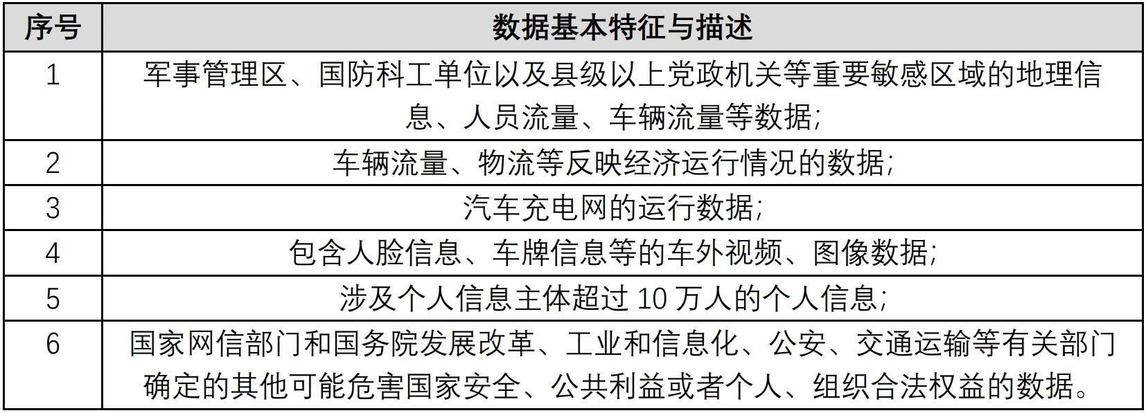表1:《汽车数据安全管理若干规定(试行)》中的重要数据