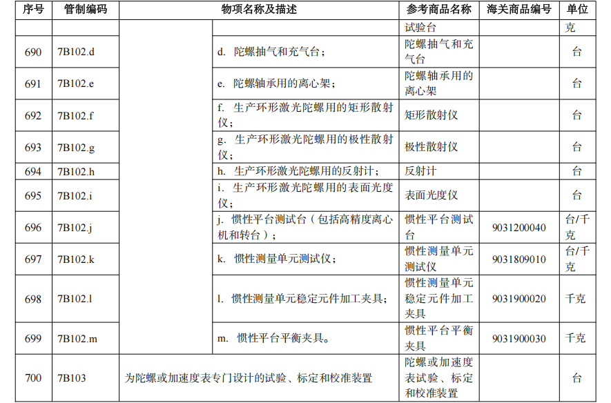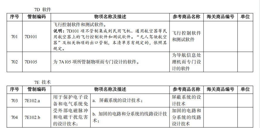 (节选自《两用物项出口管制清单》)