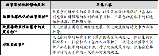 - 对其他政策目标的积极影响:除了欧盟法律承认的政策目标、欧盟非约束性法案中的政策目标外,《指南(征求意见稿)》将积极影响范围拓展至非欧盟政策目标。具体而言: