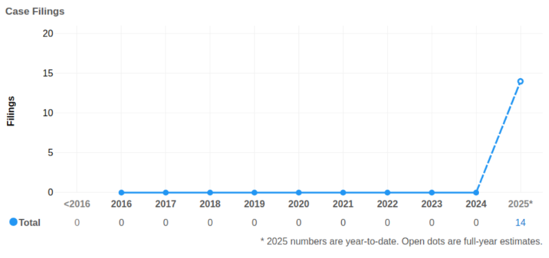 从2025年起,Storage作为原告在美国地方法院持续发起诉讼共14起,均为专利相关诉讼,100%案件在美国德克萨斯州东区联邦地区法院起诉。其中,原告撤诉案件占28.5%,暂未结案案件占71.5%。