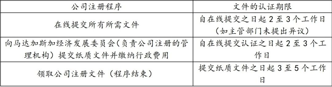 (2)向马达加斯加经济发展委员会(负责公司注册的管理机构)提交纸质文件并缴纳行政费用;