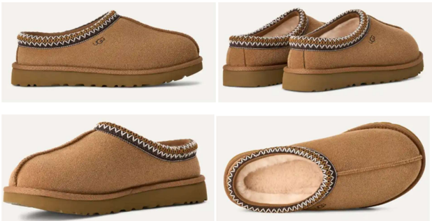 Deckers此次发起的诉讼涉及商标为一商业外观Tasman® Trade Dress,经查询美国专利商标局(USPTO)公开数据,暂未发现该商业外观的联邦注册记录。根据美国《兰哈姆法》第43(a)(c)条,未注册的商业外观可通过证明其已获得“第二含义”,即消费者将其视为商品来源的标识,且不具有“功能性”来主张权利。涉诉商业外观主要包含以下非功能性要素:a) 鞋面开口处的刺绣辫子;b) 鞋面前部有一条凸起的突出接缝,沿纵向向下延伸上部中心;c) 凸起的圆形圆顶状脚趾;d) 绒面革般的外观;和e) 厚而平的外底。其整体独特外观示例如下: