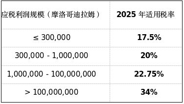 - 特定区域的优惠税率:在卡萨布兰卡金融城或工业加速区等特定区域注册并运营的企业,可以享受17.5% 的优惠税率[7]。