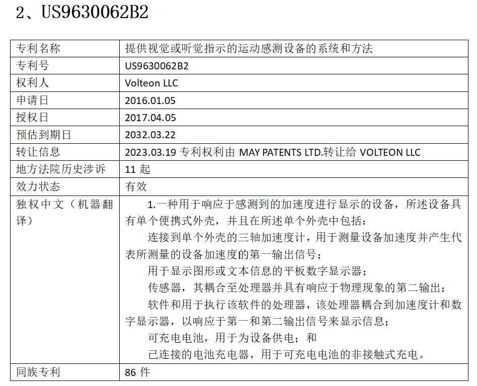 Volteon是一家注册于美国德克萨斯州的公司,在美国专利布局52件,主要集中在图像通信、手持切割工具和数字信息传输等领域,绝大部分专利为受让取得。其中,50件发明有效,1件发明审中,详见附件3。