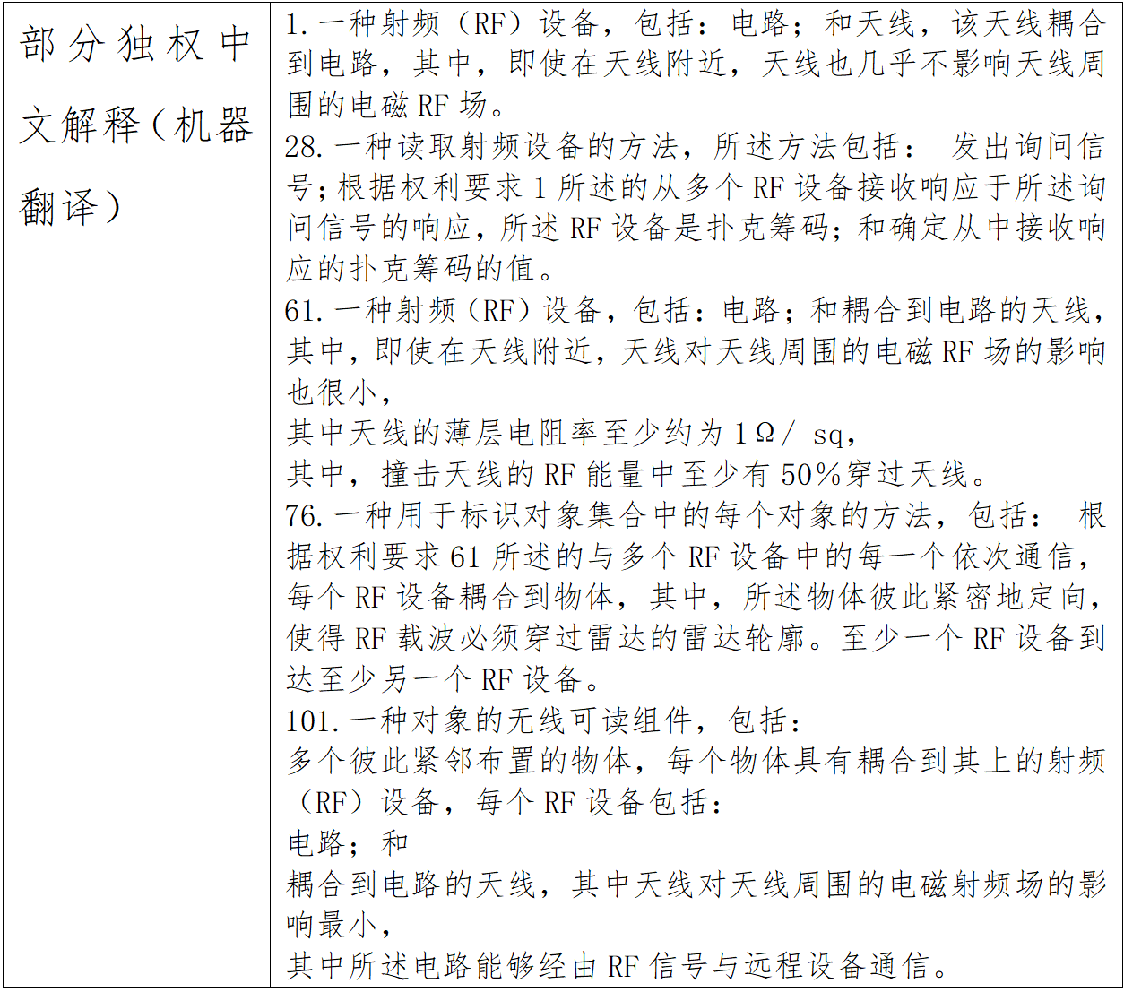 涉案专利的保护范围较大,覆盖了基于射频电磁场耦合原理的非接触式自动识别技术及相关产品。根据诉状显示,被控侵权产品均使用了天线(例如蓝牙、Wi-Fi等天线)与电路(例如被控产品的电路)相耦合的技术。