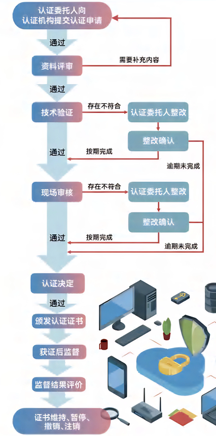(5)SAs或认证机构并根据认证方案中的认证标准和要求进行合规性评估,并持续监测认证对象合规性,有权颁发、更新(认证最长时效为3年)以及撤销认证;