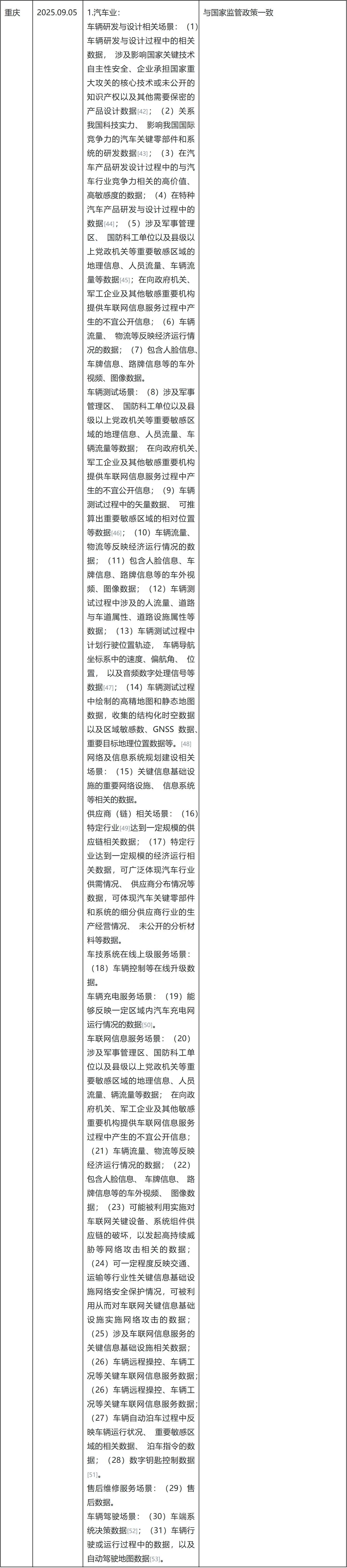 [52] 本业务场景的重要数据不含与车端决策的功能安全、 网络安全等无关的数据