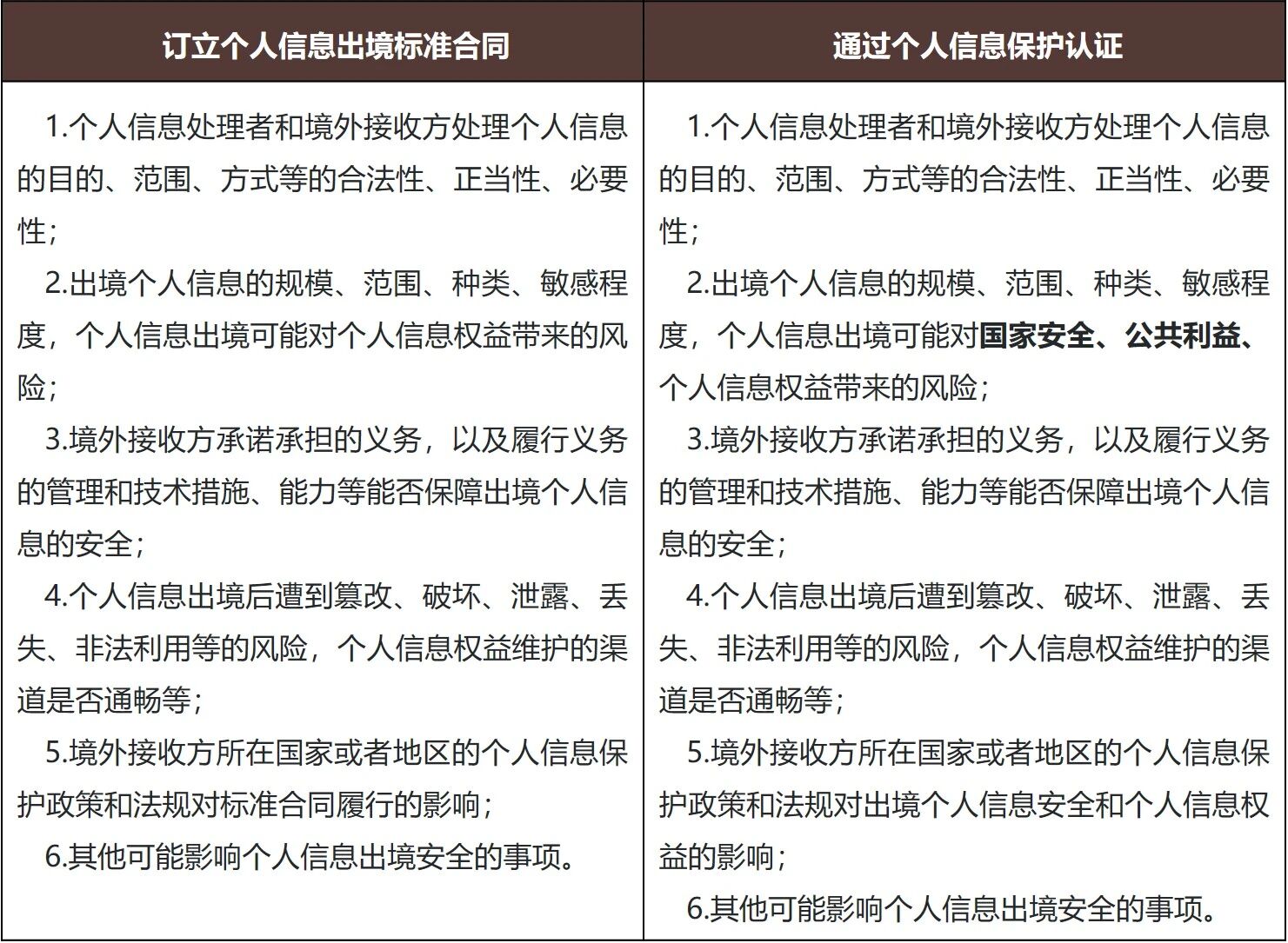 根据《关于实施个人信息保护认证的公告》[65],个人信息出境认证是个人信息保护认证的一种,适用于数据跨境场景。认证机制要求企业不仅满足一次性合规要求,还需建立持续的数据保护机制,如跨境数据处理活动的安全管理制度、风险评估机制、用户信息保护制度等。这可以帮助企业从“被动合规”转向“主动治理”,推动内部数据合规体系的系统化建设。