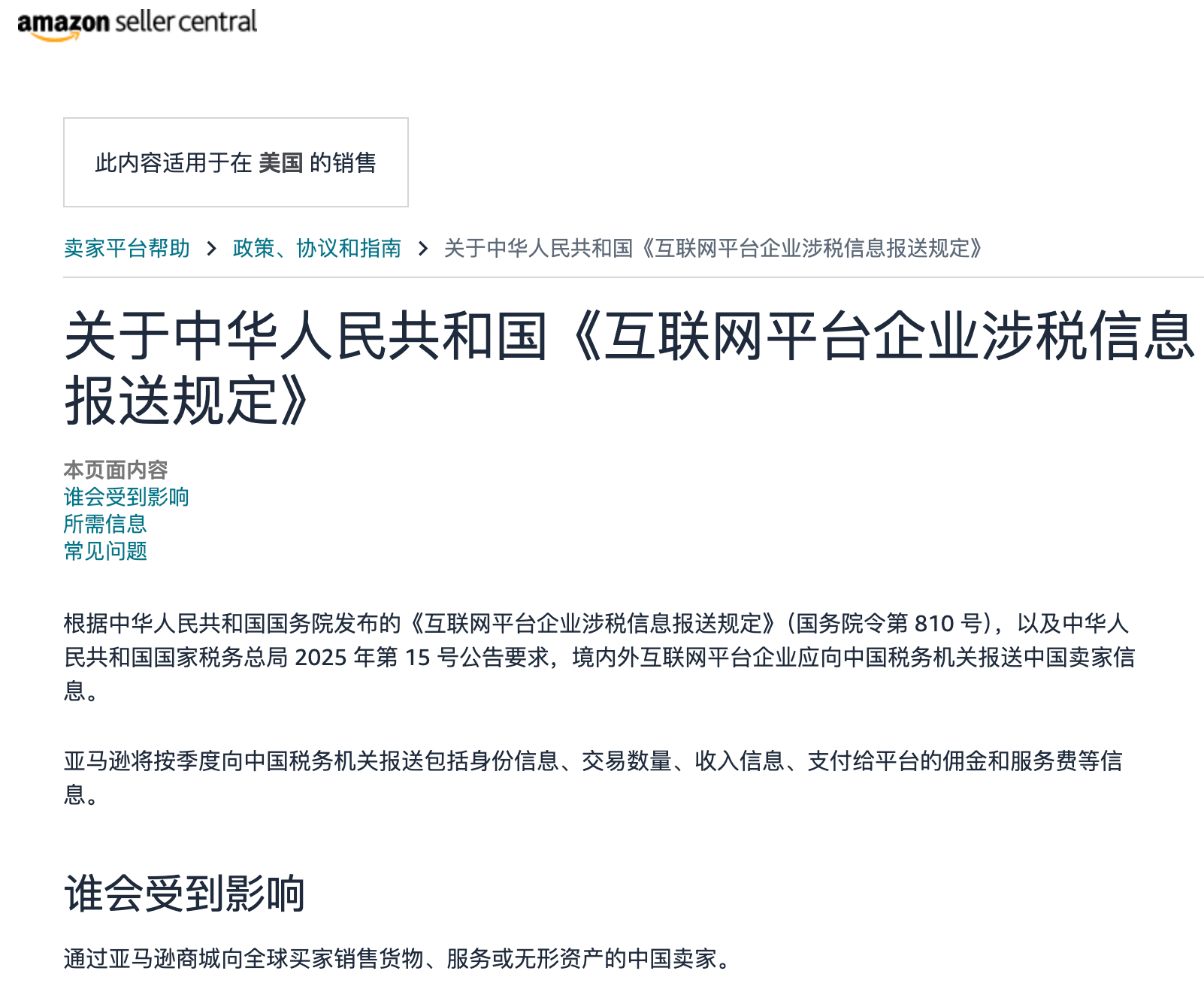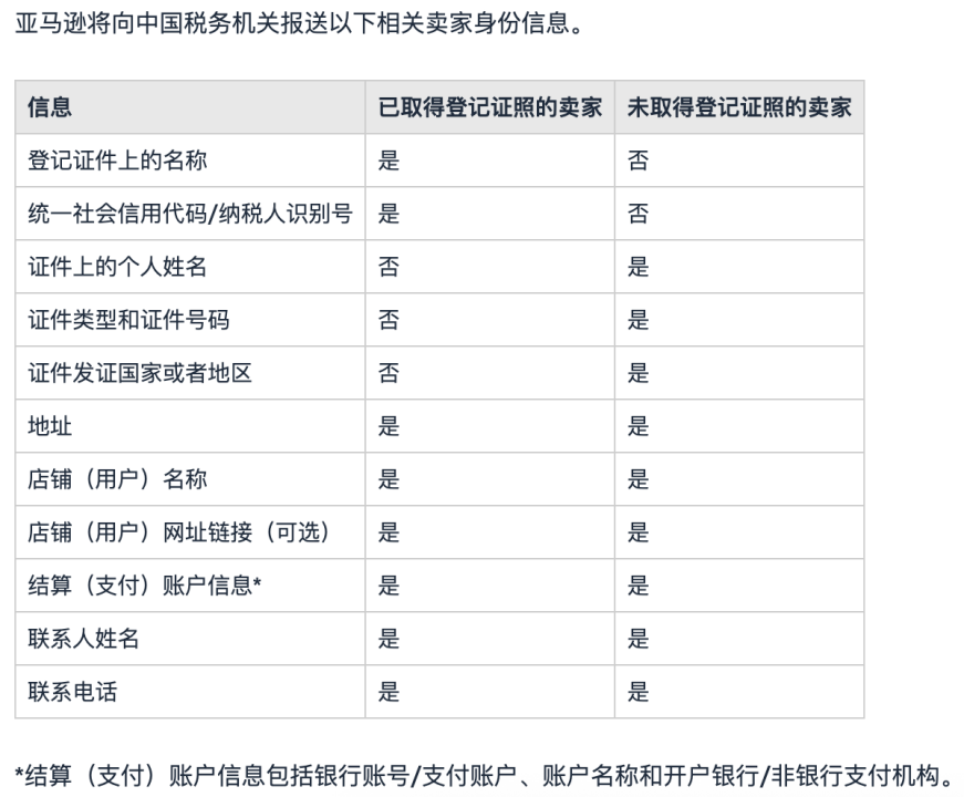 亚马逊发布的关于报送中国卖家信息的通知