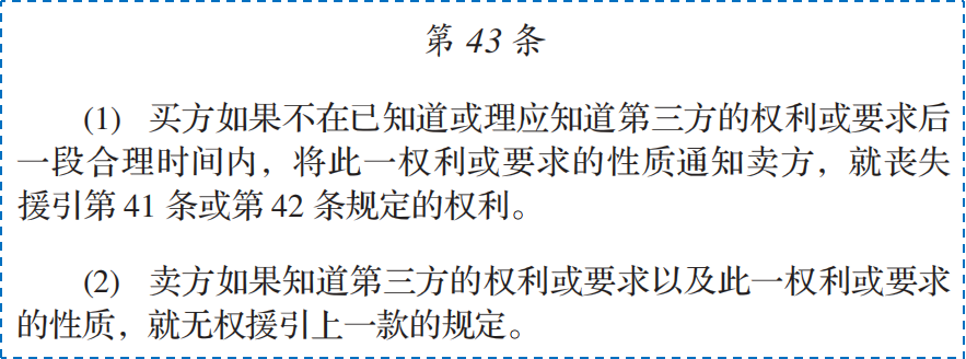 (二)第43条规定卖方承担知识产权担保义务的前提是买方履行通知义务