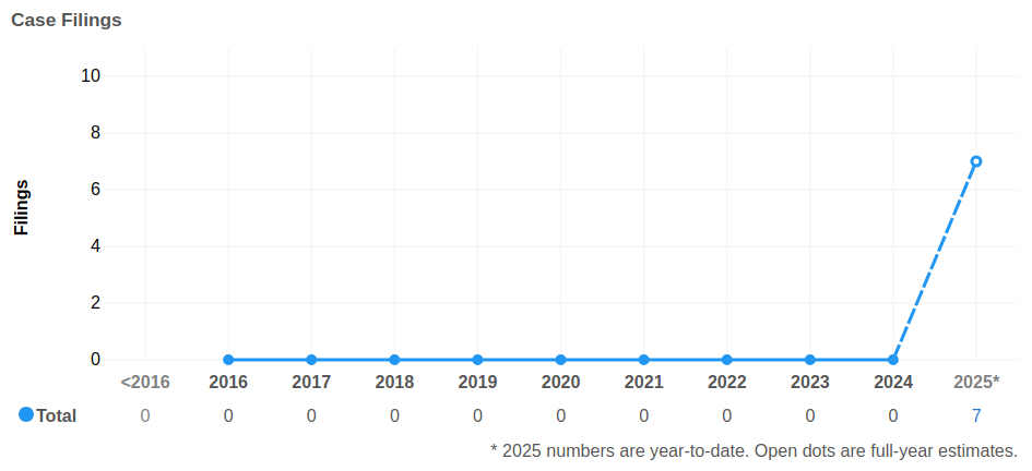 2025年,Veribase发起的7起美国联邦地区法院专利诉讼案件中,被告涉及深圳企业的案件共2起,涉案深圳企业共2家,2起案件涉案专利一致,具体案件信息如下: