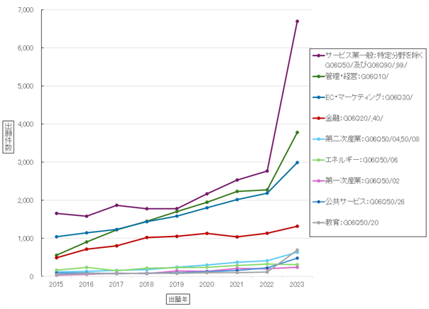 [2] “特定领域”指G06Q50/04,50/08(第二产业)、G06Q50/06(能源)、G06Q50/02(第一产业)、G06Q50/26(公共服务)、G06Q50/20(教育)。