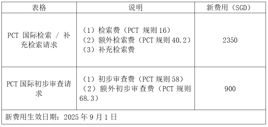 IPOS 于今年7月发布《费用更新》(Fee Updates)公告,对专利、商标、外观设计、植物品种保护及版权等知识产权相关官费进行调整。其中针对专利申请,主要调整包括提高PCT检索与初步审查费、降低超额权利要求费收费门槛并提高费用标准、将超额权利要求费支付时点由授权阶段提前至答复审查意见阶段,以及提高专利续展费用标准。
