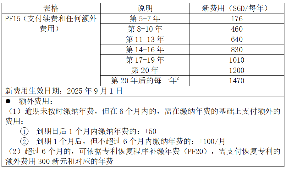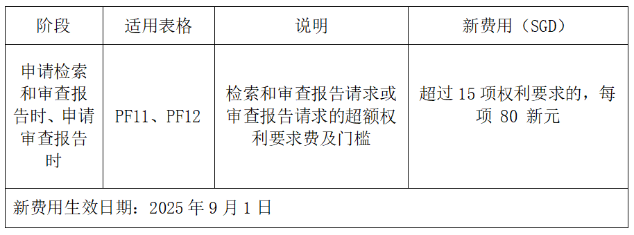 1.自2025年9月1日起,更新PF11(检索和审查报告请求)和PF12(审查报告请求)中超额权利要求费收费门槛和费用标准。