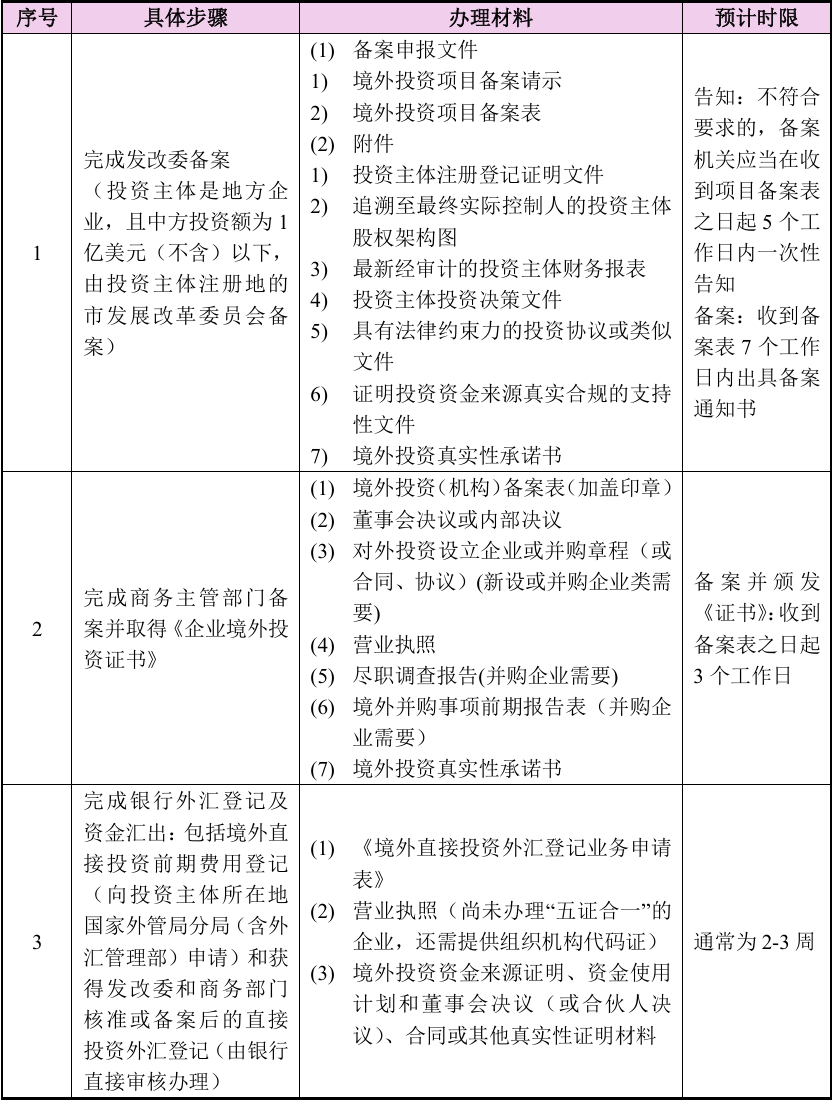 [1]结合不同企业从事的不同业务,当境外投资标的/运营实体涉及到部分特殊行业时,该企业可能需进一步向行业主管部门征询相关境外投资意见,因此除上述所提及的三个政府机关外,该企业可能仍需完成其他相关审批部门的备案或核准要求。