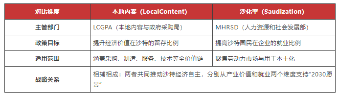 总体而言,实体层面反映的是企业在沙特市场中的整体本地化能力与长期投入水平,合同层面则体现企业在具体项目中的实际执行效果与履约表现。二者在功能上相互补充,共同构成沙特本地内容评估与管理体系的基本框架。