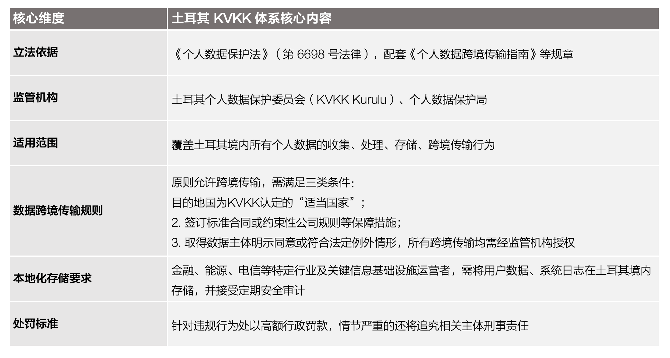《个人数据保护法》(KVKK,第 6698 号法律)是土耳其个人数据保护的核心法律,其制度框架高度参考GDPR,但在跨境传输审批、本地化存储等方面形成了更具本地特色的监管要求。