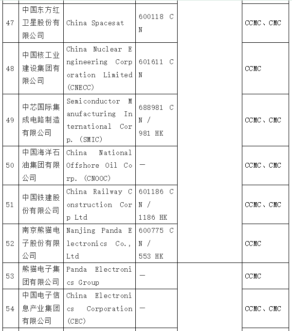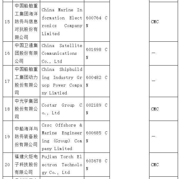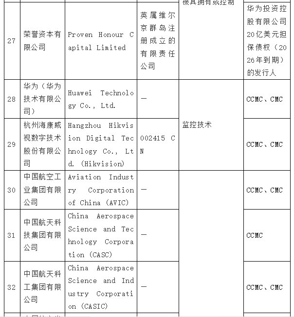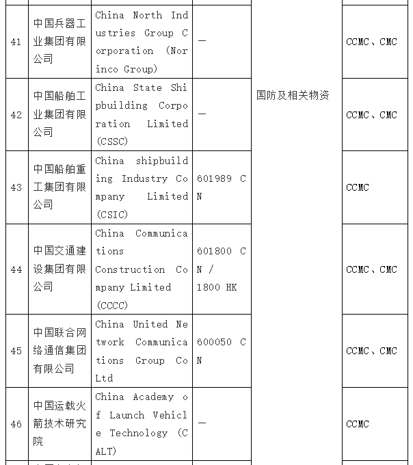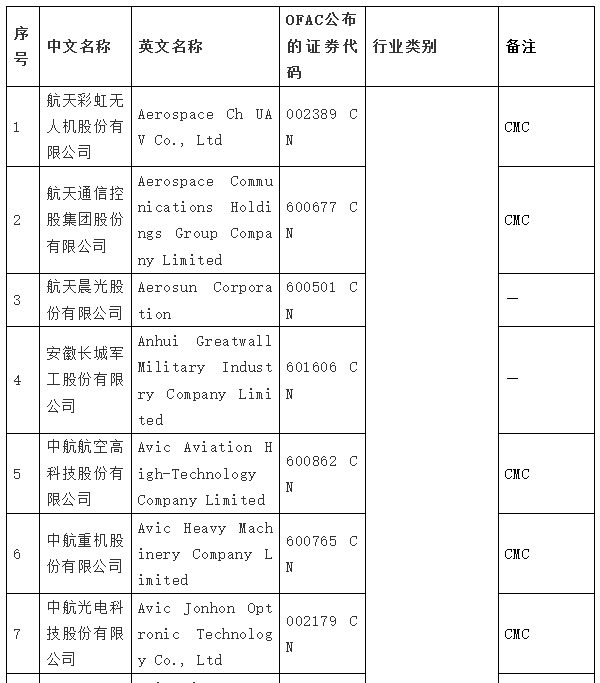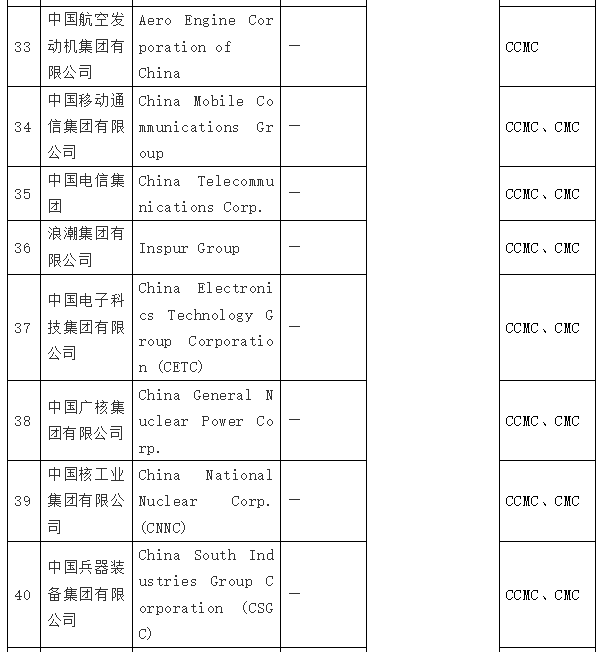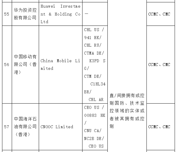 在拜登签发第14032号EO的同日,美国国防部根据《2021财年国防授权法》(2021 NDAA)第1260H节的规定,出台了“中国军事企业清单”(Chinese Military Companies,CMC 清单),列入了47家中国企业。