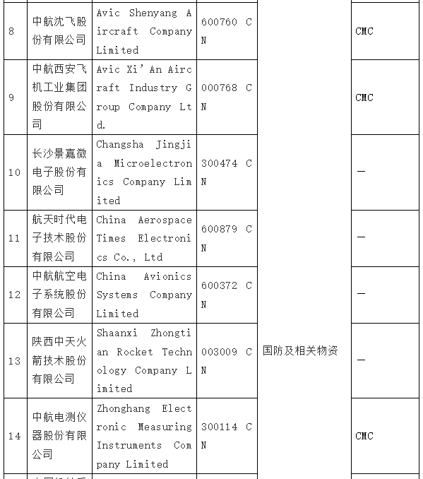 - 中国国务院认定的“军工企业”(defense enterprise);
