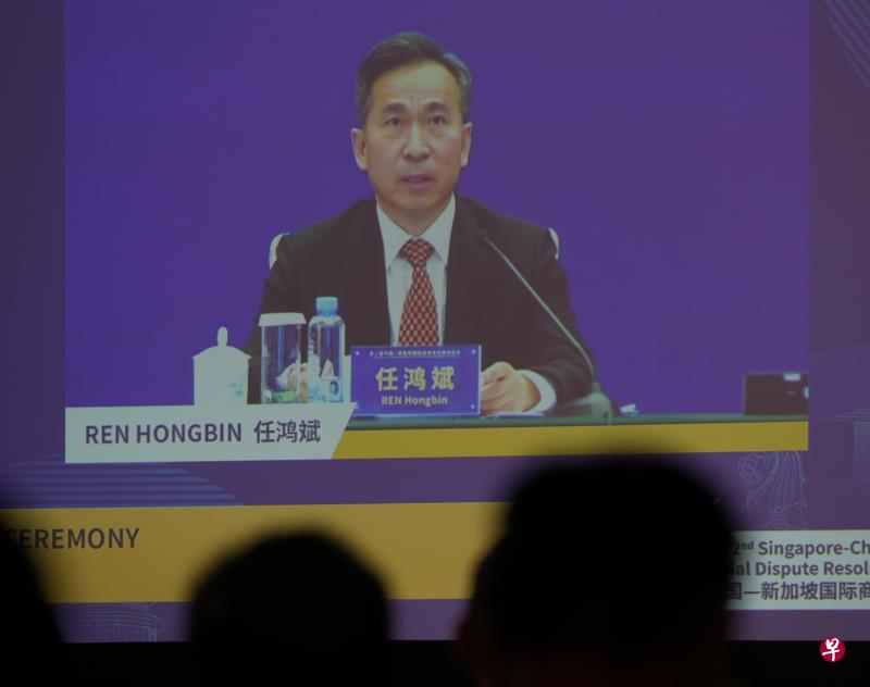 任鸿斌在昨天举行的第二届中国—新加坡国际商事争议解决论坛上,为开幕式致辞时谈到全球的贸易发展。论坛在新加坡、北京和厦门各设会场,身在北京的任鸿斌通过连线的方式,向另外两地和线上的观众发言。中国贸促会是论坛的联合主办方。