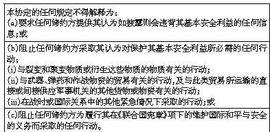 《1994年关税与贸易总协定》(GATT 1994)第21条、服务贸易总协定(GATS)第14条之二等条款均以“安全例外”为题规定了相同或近似内容。此外,技术性贸易壁垒(TBT)等协定中的部分条款也提及国家安全,这些条款中GATT1994第21条历史较早、在争端中被援引得最多,其规定如表1。