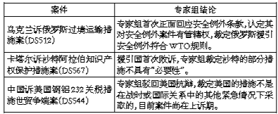 关于“安全例外”条款的案例最早可以追溯到GATT时期,部分成员依据国家安全的特殊性和条款中的具体措辞,认为安全例外条款是“自主裁判”条款,争端解决机构无管辖权。此前,争端解决机构一直未能就此问题作出澄清。2019年,乌克兰诉俄罗斯过境运输措施案(DS512)专家组首次肯定其对“安全例外”案件具有管辖权,后续案件专家组也延续此结论。